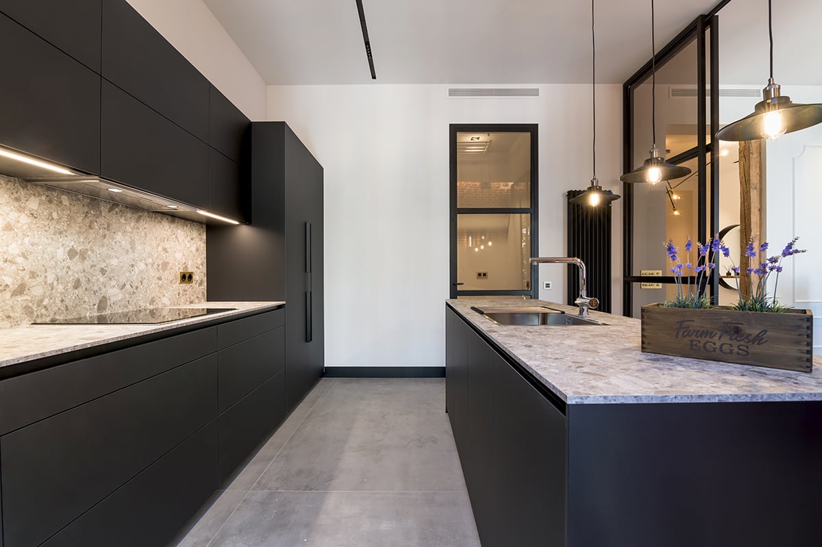 - Interior of a kitchen of a modern apartment. Nobody inside.